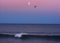 I m’hi vaig quedar fins que va sortir la lluna, una mitja lluna blanca, brillant i perfecte, teixida entre els taronges de la posta.